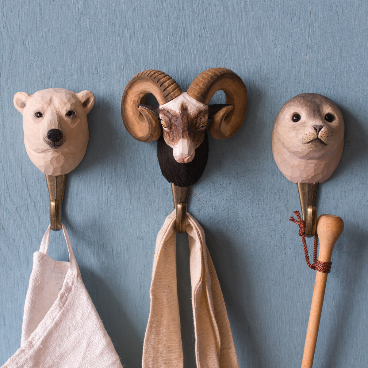 Træ knage – flot snittet i Lindetræ og håndmalet med miljøvenligt maling.