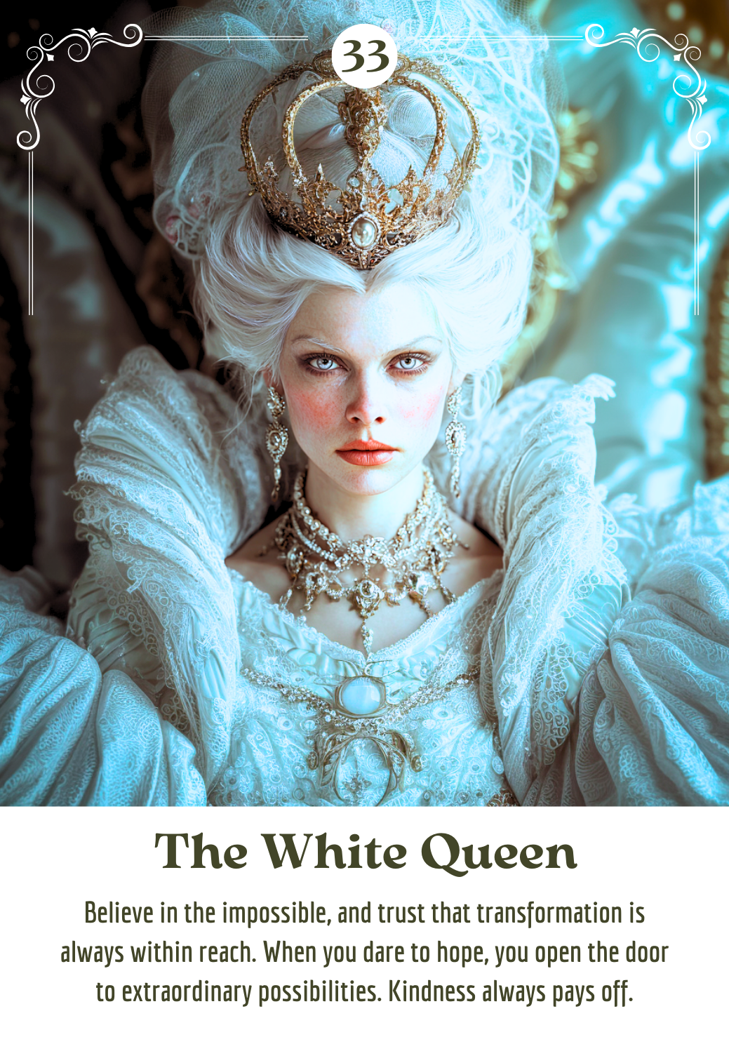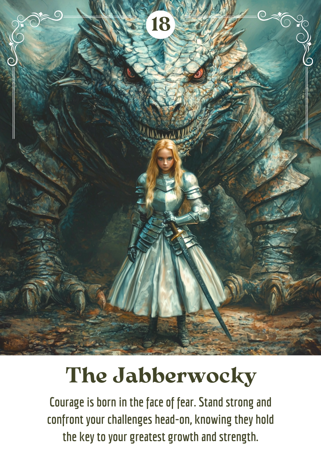 Velkommen til Wonderland Oracle – en magisk rejse, der tager dig med dybt ind i selvopdagelsens, transformationens og styrkens verden. Inspireret af den finurlige og dybsindige fortælling om Alice i Eventyrland tager dette kortsæt dig med på et eventyr gennem dit indre verdens ekstraordinære landskab, hvor temaer som mod, autenticitet og vækst folder sig ud ved hvert et skridt.